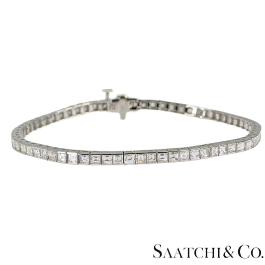 14K (585) White Gold Asscher Cut Bracelet - Natural White VVS-VS Diamond Tennis