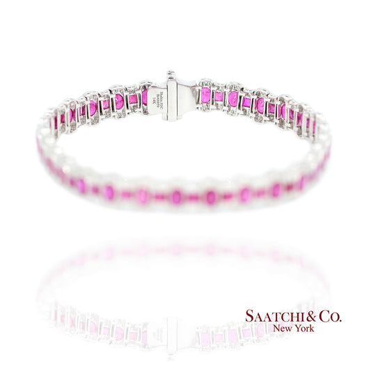 14K White Gold Natural Ruby Diamond Tennis Bracelet Milgrain Setting