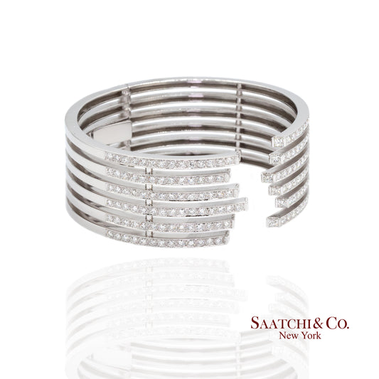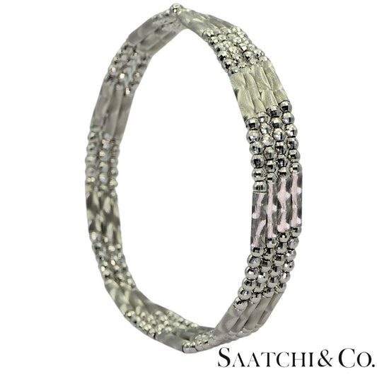 18K (750) White Gold Natural Diamond Wide Mesh Bracelet 15 Rows