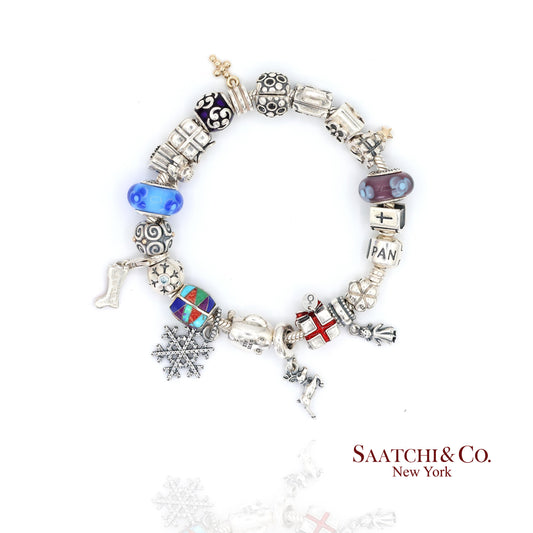 Pandora Charm Bracelet 925 Sterling Silver Womens 8in Vintage Authentic Lot