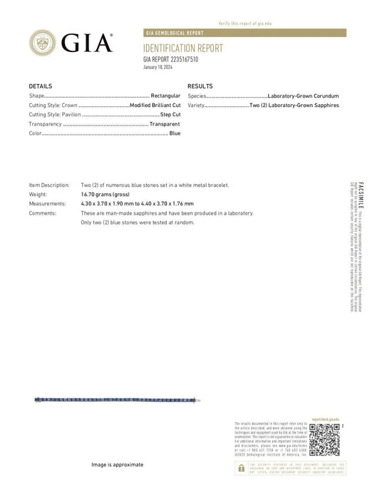 Platinum (950) LAB Created Top Quality Sapphire Grench Cut: Tennis Bracelet