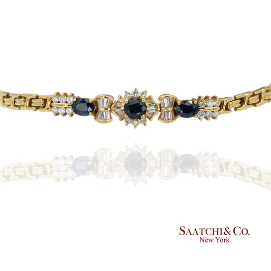 20k (850) Yellow Gold Natural Sapphire and Natural Diamond Bracelet