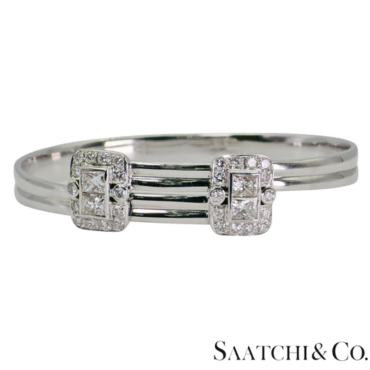 18K (750) White Gold Adjustable Bangle Natural White VVS-VS Diamond