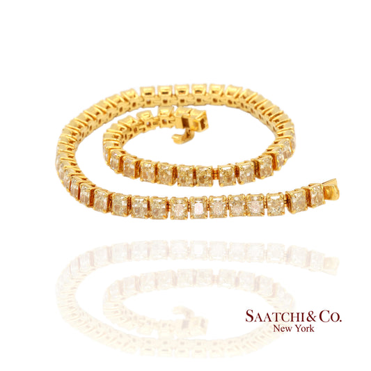 18K(750) Yellow Gold Natural Diamond Tennis Bracelet Size 8.5