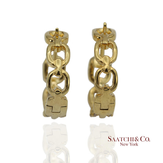 14K(585) Solid Yellow Gold Natural Diamond Link Chain Huggies Earrings