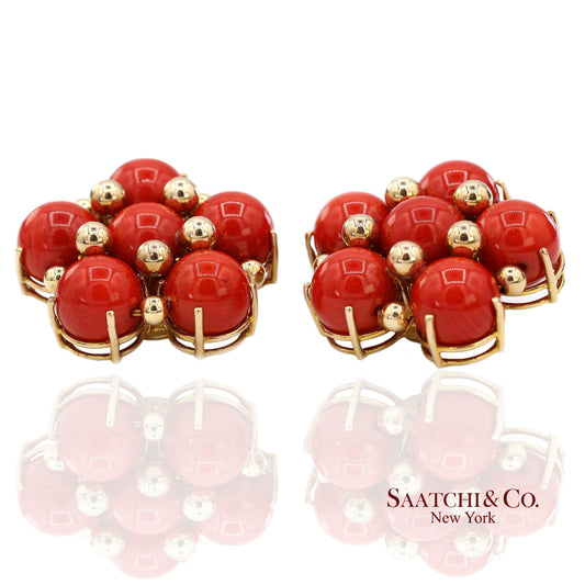 14K(585) Solid Yellow Gold Coral Omega Earrings