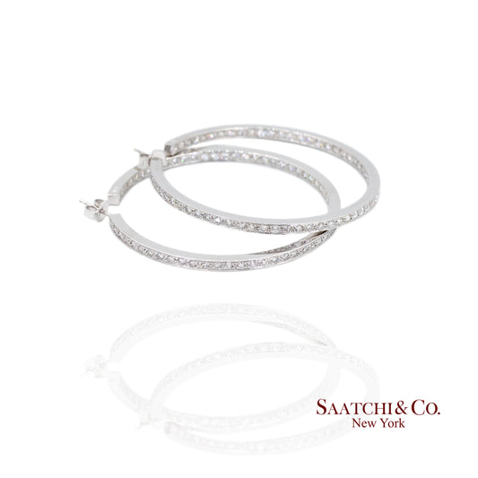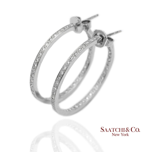 18K(750) Solid White Gold Natural Diamond Hoop Earrings In and Out Diamond