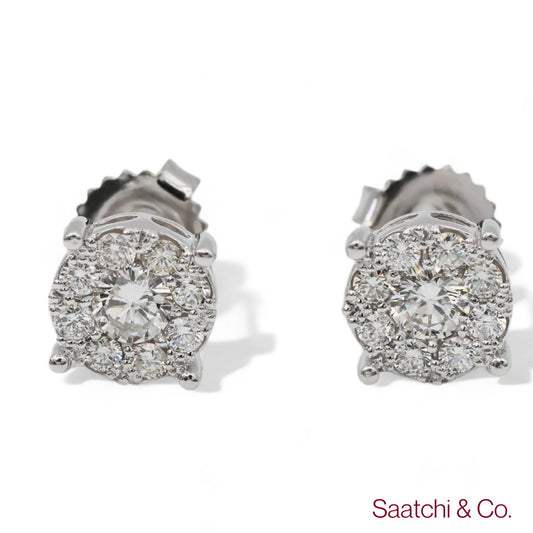 14k (585) White Gold Round Cut Diamond Cluster Stud Earrings