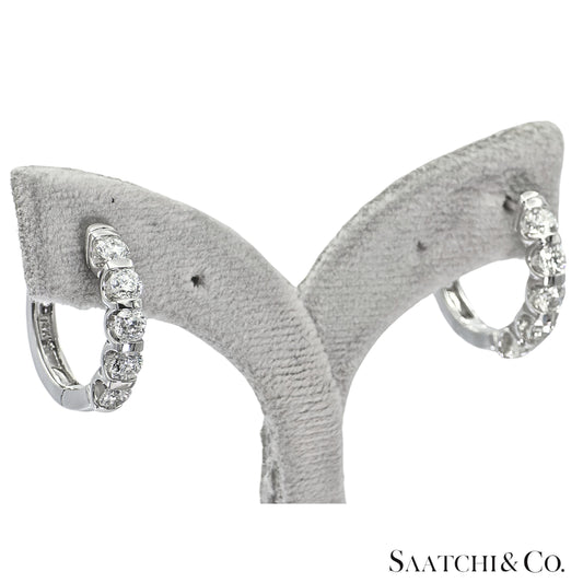 18k Diamond Hoop Earrings Womens White Gold Fine Jewelry Classic Luxe