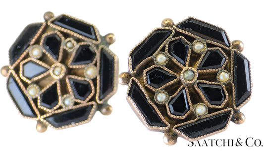 14K (585) Yellow Gold - golden Onyx Stone And Pearl Earring, 5.1 Gram