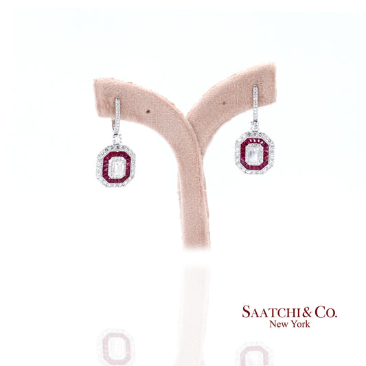Platinum 950 Dangling Natural Ruby and Diamond Earring