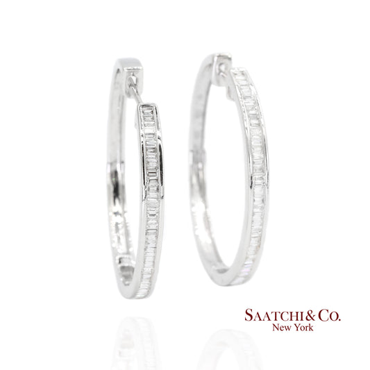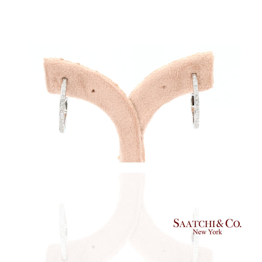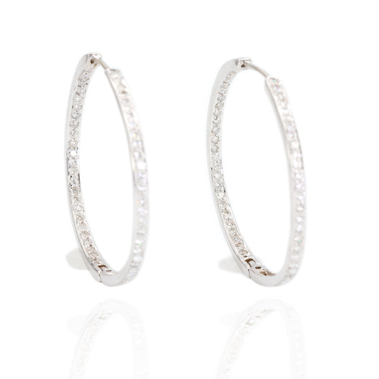 18K White Gold Natural Diamond Hoop Earrings In and Out Diamond
