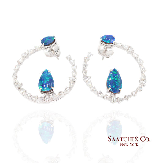 18K (750) White Gold Natural Diamond and Natural Opal Earring