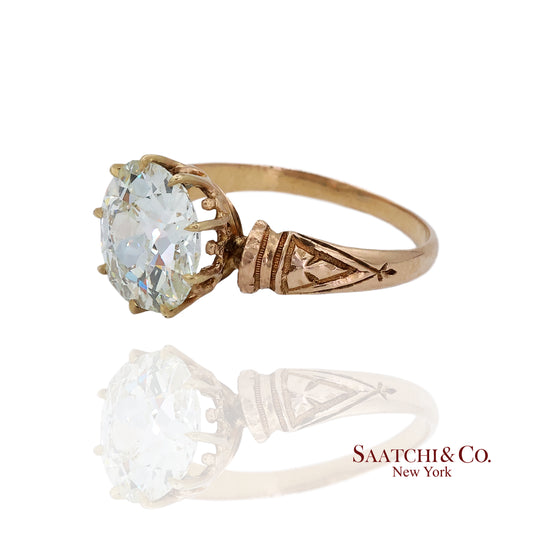 Victorian hand carved shank with Old Mine Brilliant GIA Certified center diamond