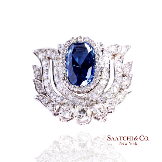 Antique Edwardian platinum mount with No Heat Sapphire and Diamond accents