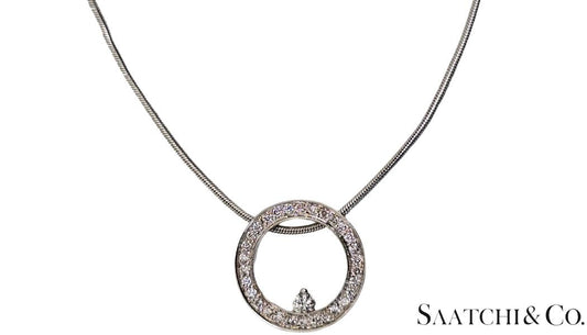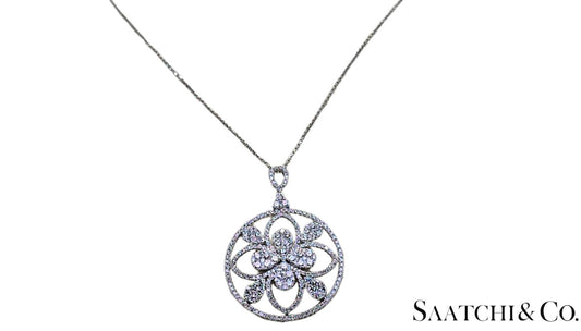18K(750) White Diamond Vintage Pendant with Chain Necklace
