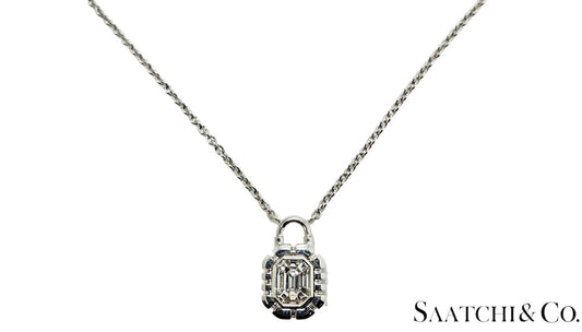18k (750) White Gold Natural Diamond Illusion Emerald Pendant with Chain
