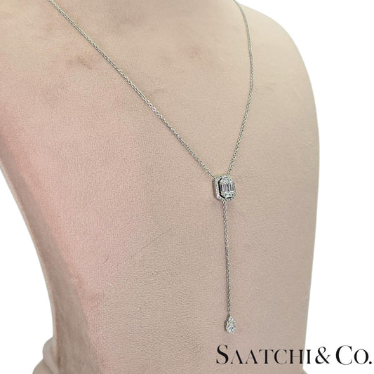 18K White Gold - 0.39 Ct Natural Diamond Luck Shape Pendant with Chain