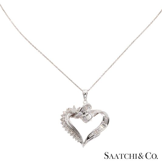 18k (750) White Gold Natural Diamond Heart Shape Pendant With Chain