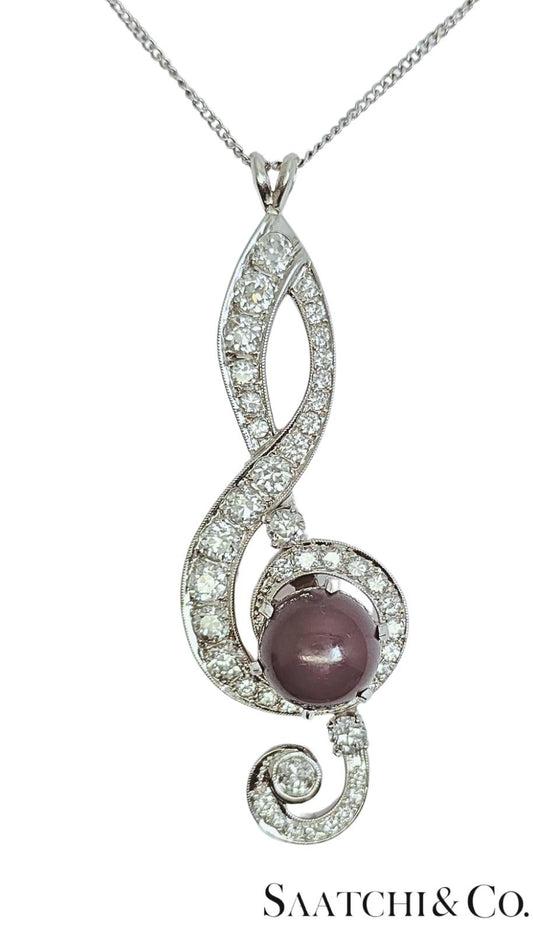 Black Pearl, 14K(585) white gold Pendant, Natural Diamond, Musical g Clef symbol