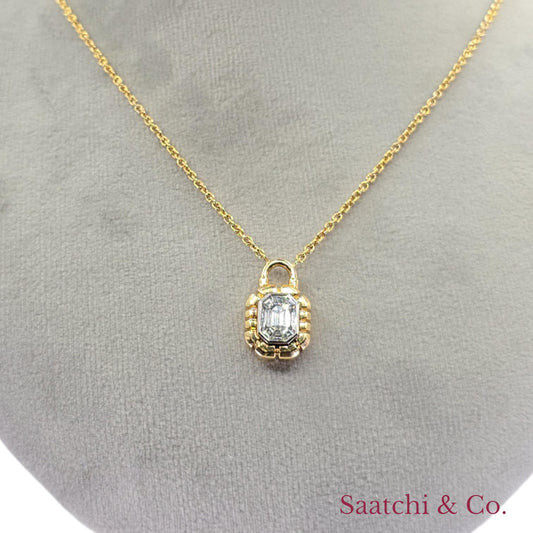 Lock Shape Diamond Illusion Emerald Setting Pendant 18K (750) Yellow Gold