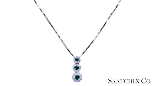 14K (585) White Gold Natural Diamond & Emerald Pendant With Chain