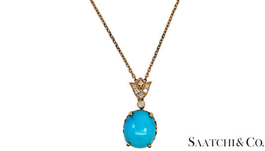Persian Torquise 4.7 Ct & Natural Diamond VVS-VS, 18K Rose Gold Pendant & Chain