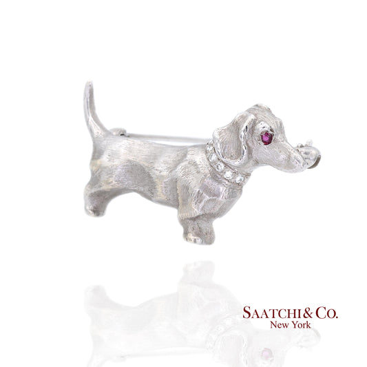 14k (585) White Gold Dachshund dog Brooch / Pin