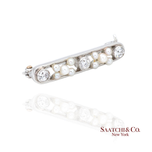 Platinum 950 Natural Round Pearl and Natural Diamond Brooch / Pin