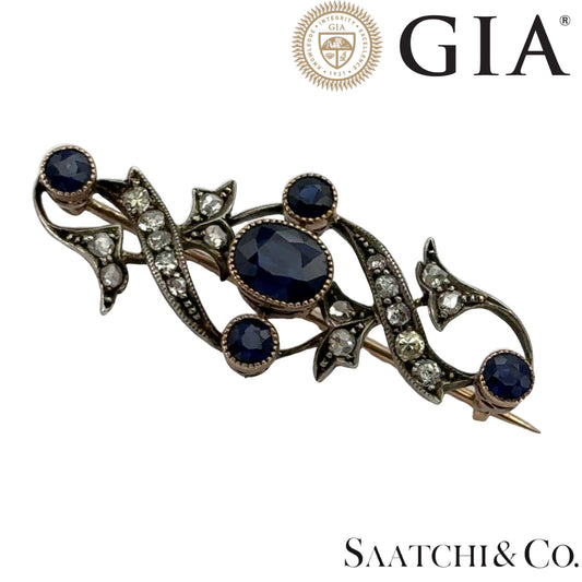 Vintage Natural Sapphire 14K Gold Brooch Pin With Gia Certificate