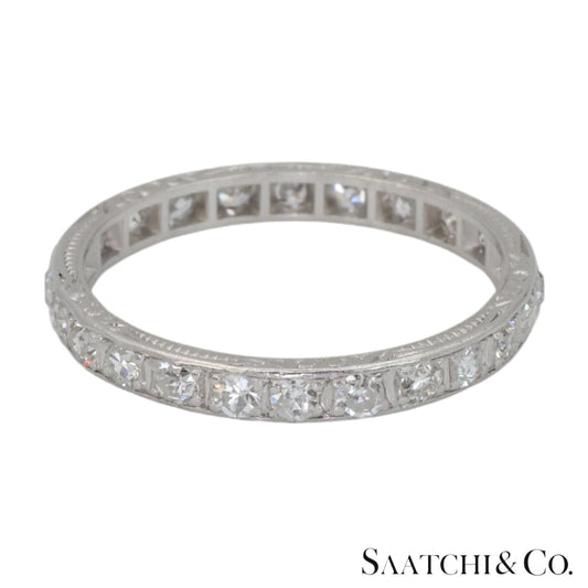 Platinum 950 Natural Diamond Engraved Band, Size 8