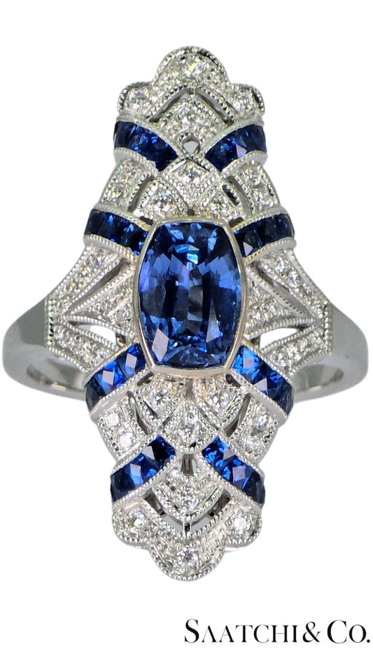 Antique Edwardian platinum mount with No Heat Sapphire and Diamond accents
