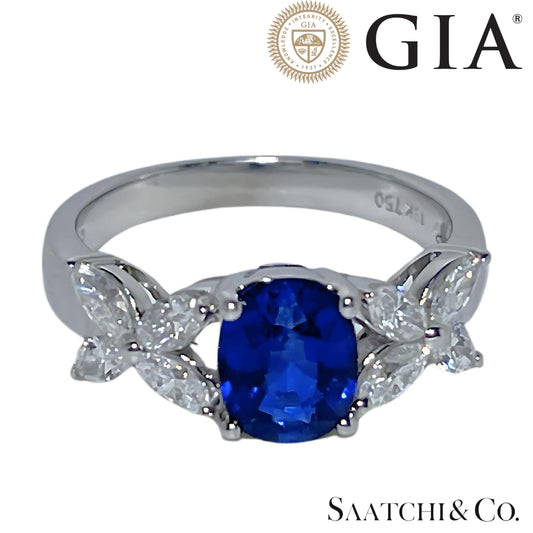 18 K White Gold Diamond - GIA Certified Blue Sapphire Ring