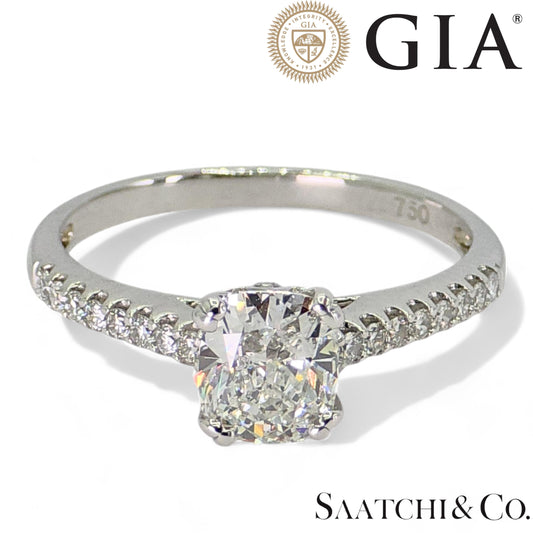 GIA Certified Natural Diamond Cushion cut in 18k (750) White Gold Ring Size 6