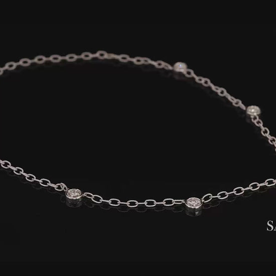 14k Diamond Station Necklace Womens 18in White Gold Minimalist Dainty Chic